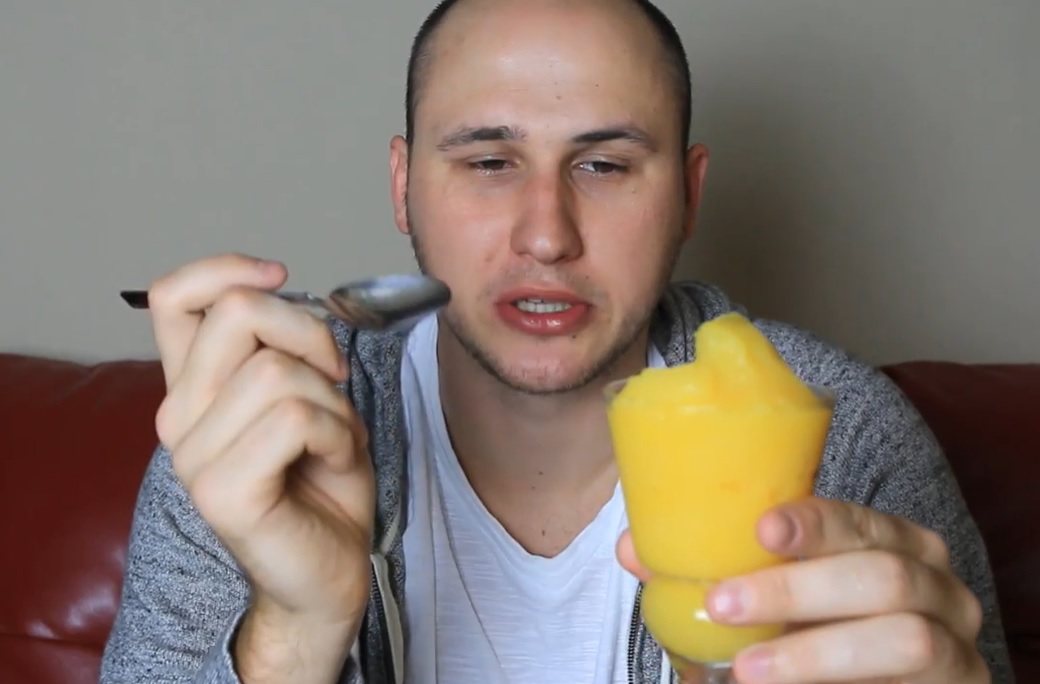He filled a plastic bag with orange juice. minutes later.. i have to try this!